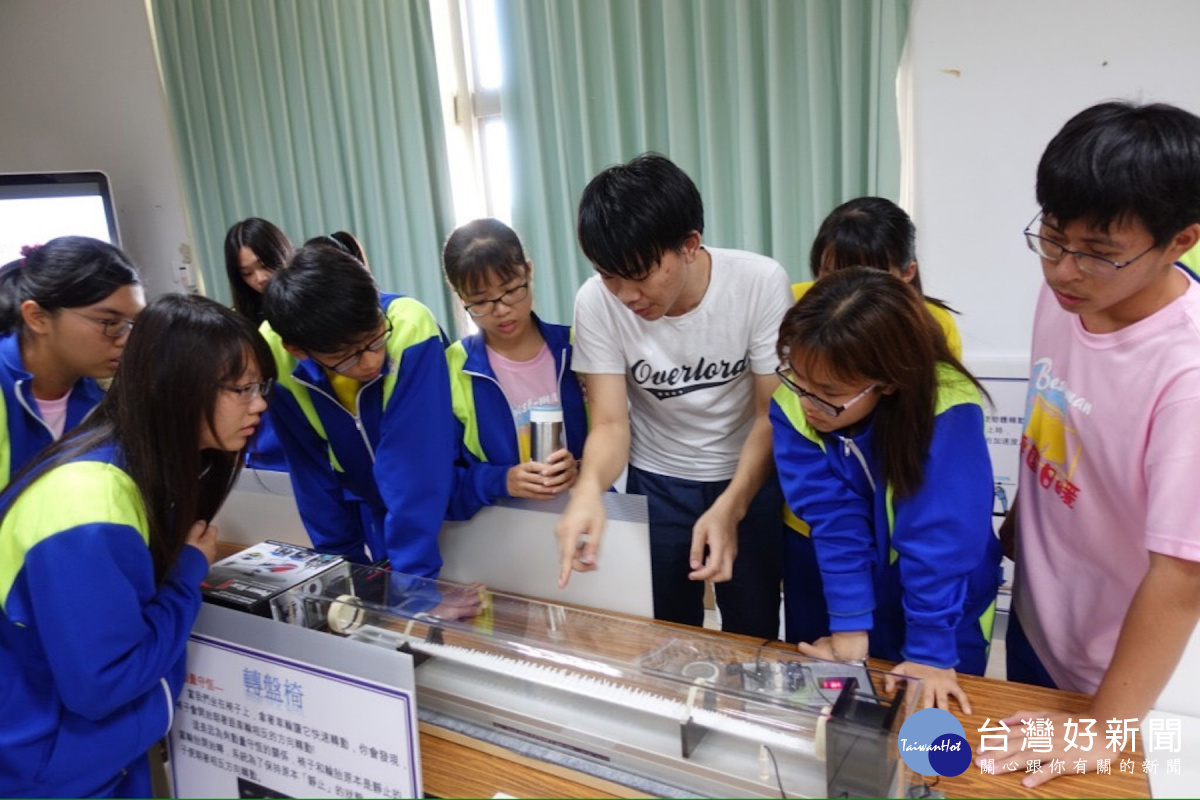 科技部「廟口學科學」列車開抵北門高中,成功大學物理系羅光耀教授帶領學生賴瓘輝、劉驊興分享科學與科技的關聯性,訓練學生擔任講員透過實作讓學生體驗到科技中科學原理,包括轉動實驗、角動量守恆等,學生們紛說科學的世界無遠弗界。