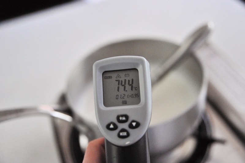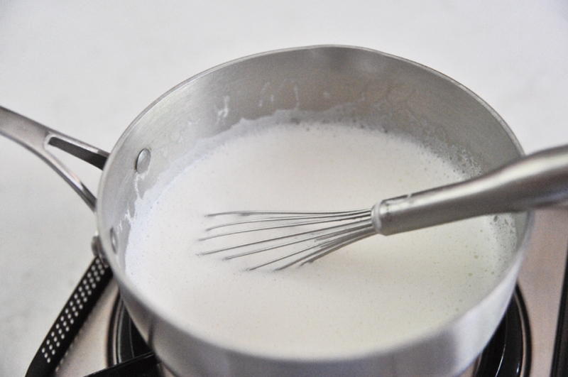 2. 鮮奶、鮮奶油、啤酒及鹽放入厚底鍋中,加熱至鍋邊起泡(參考溫度達到75℃上下)離火,等待自然降溫至60℃微溫狀態使用。