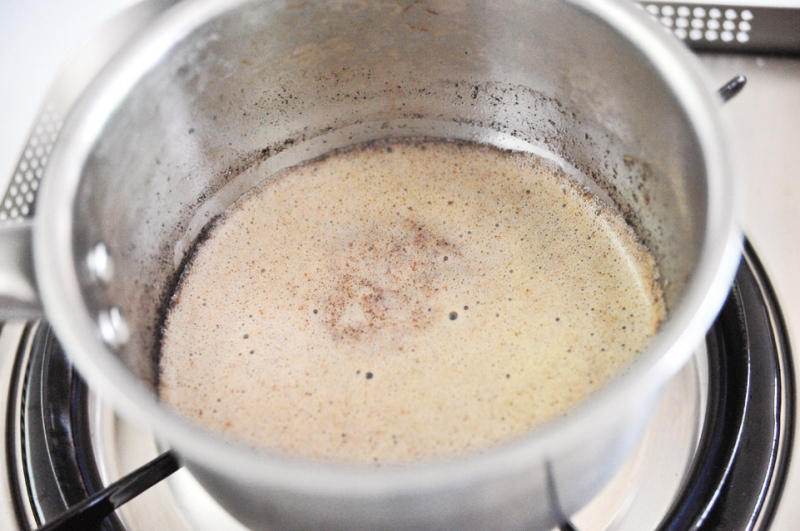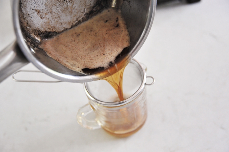 TIPS→離火的熱奶油應立即從熱鍋中倒出過濾,避免熱鍋高溫讓焦化持續。