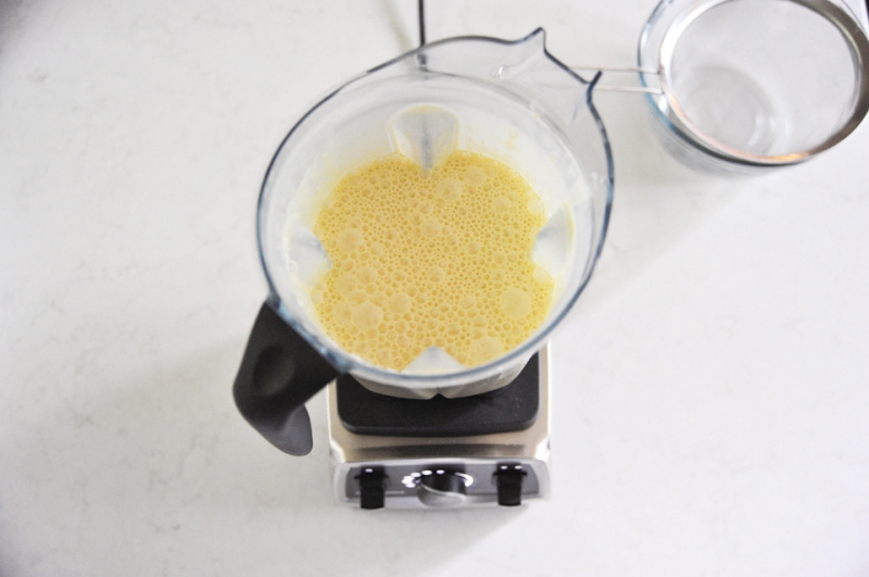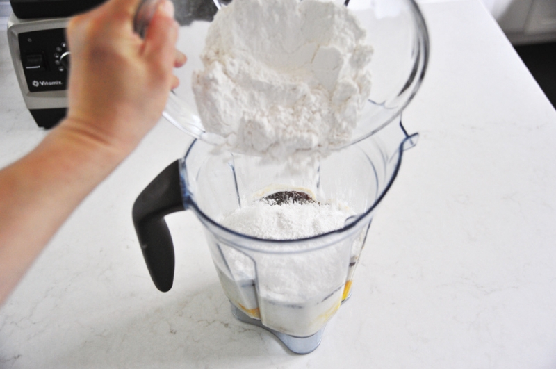 4. 將所有麵糊材料放入生機調理機中,以高速混合成質地均勻、無顆粒狀態的麵糊。