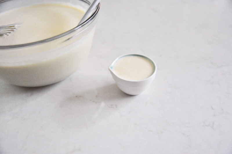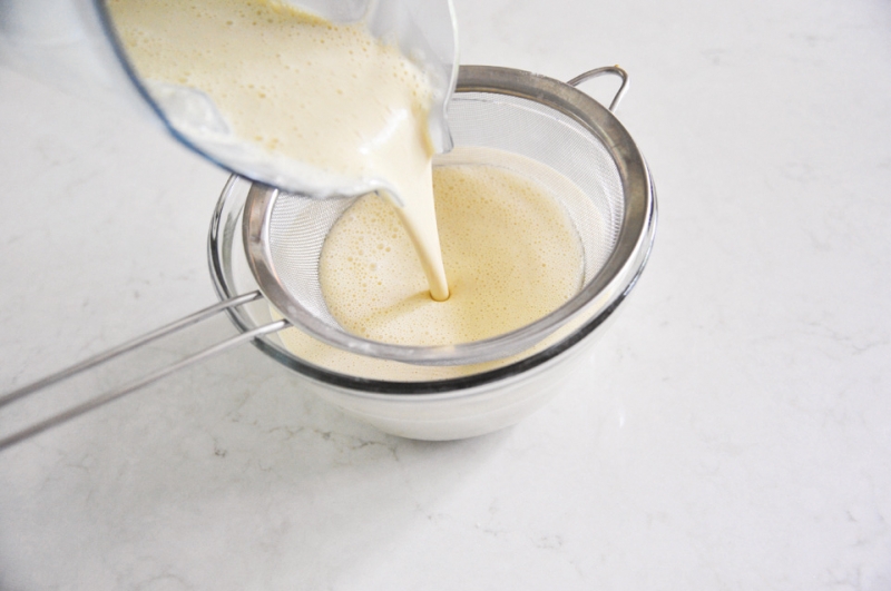 TIPS→生機調理機處理過的麵糊,可使用細網過濾後使用,質地將更為細膩。若家中無生機調理機者,建議先將雞蛋打散,再與其他所有材料混勻,覆蓋保鮮膜防乾、放入冰箱一夜、次日再過濾麵糊使用。