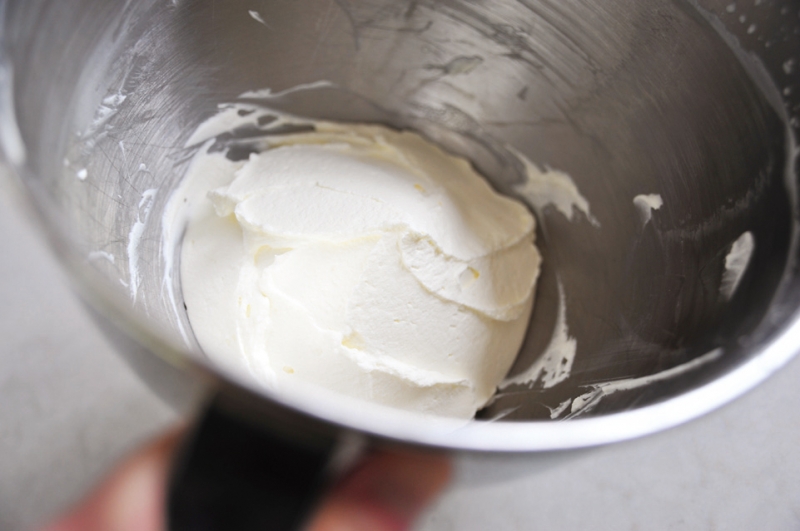 10. 鮮奶油也打發成硬性發泡備用,並預留60~70克存放冰箱,做為表層裝飾使用。