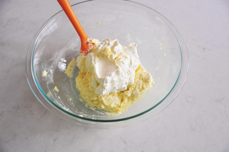 TIPS→冰過的卡士達醬會很黏稠,因此要先推抹開來,才易拌勻。