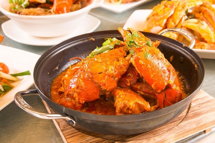 螃蟹料理是珍寶海鮮揚名立萬的絕活,除了被譽為新加坡國菜的「辣椒螃蟹」、「胡椒螃蟹」,還有白胡椒、椒鹽焗、豆漿蛋白蒸、金沙、奶油焗、薑蔥炒、砂煲粉絲、金絲奶油,共計10種作法;店家還從新加坡進口9~10種醬料,調和出獨門醬汁,將在地好味道原汁原味在台呈現。