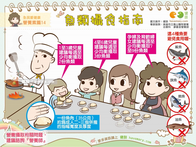 若以分齡飲食建議來看,食品藥物管理署亦有魚類攝食指南可供參考!