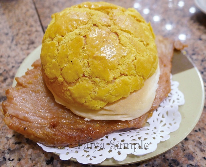 以法國麵包、吐司或者菠蘿麵包中間夾著香煎過的醃製肉排,鮮嫩多汁。