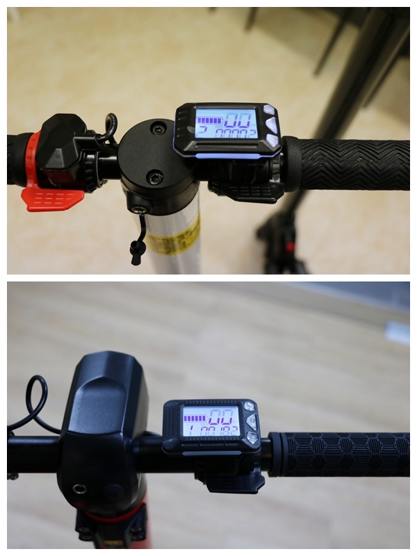 儀表板─每台電動滑板車必備,通常安裝於車手把處,可提供即時查看速度、巡航變速設定、功能切換、剩餘電量、單趟里程數、總里程數等資訊。