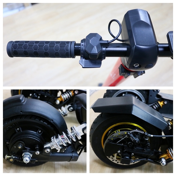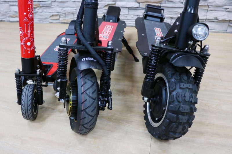 輪胎─大多採用超耐磨實心胎規格,兼具無需打氣、絕不爆胎且制動性能穩定優點,安全性良好,而輪胎尺寸越大可適用的時速越高,且轉彎半徑與幅度小、靈敏度高,不過缺點是會加重整車重量