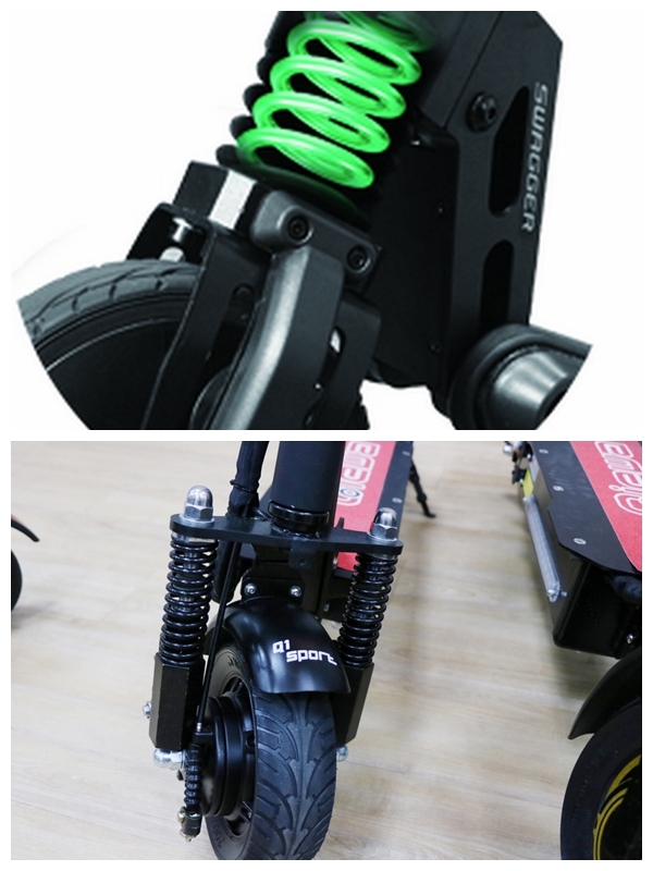 懸吊避震系統:針對體重較重或接觸不平整路面的衝擊下,能排除騎乘不適感,以及有效減少與避免設備機械零件損害。