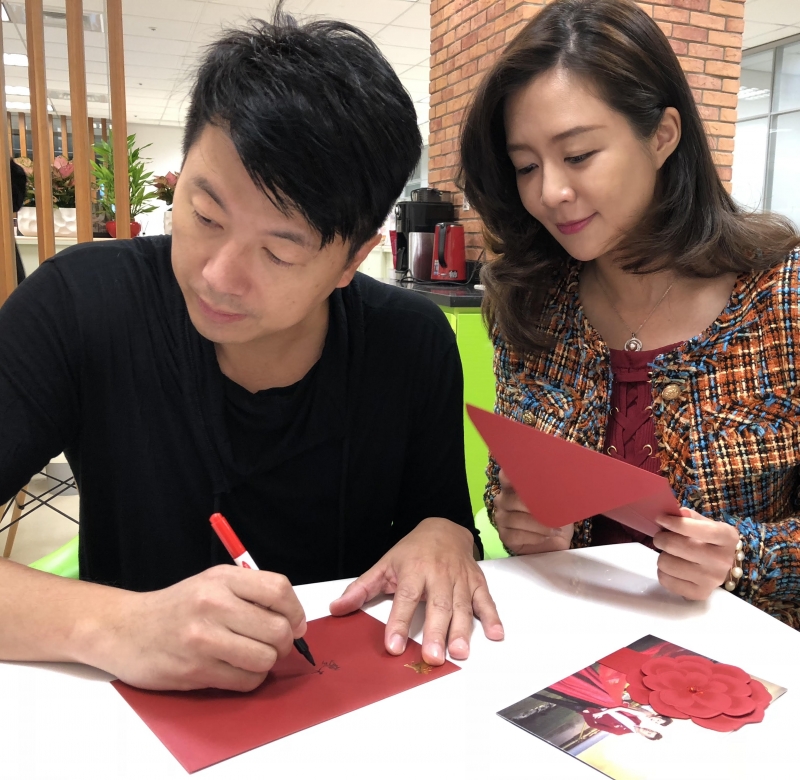 婚期將近的吳皓昇及文汶,昨日(9號)特地到民視林口總部發送喜帖,更親自寫上每一位嘉賓的名字,吳皓昇說「老婆的字最美,但目前他要處理更多事情,所以寫字的工作就交給我了!」,愛妻的心情表露無遺,他進一步說因為文汶覺得自己如果可以做好,那就下去做,甚至連喜帖的緞帶也是跑遍了全台灣最後在南投找到她想要的樣式,如此執著又用心,要讓每一位出席的嘉賓可以感受到兩人滿滿的愛。