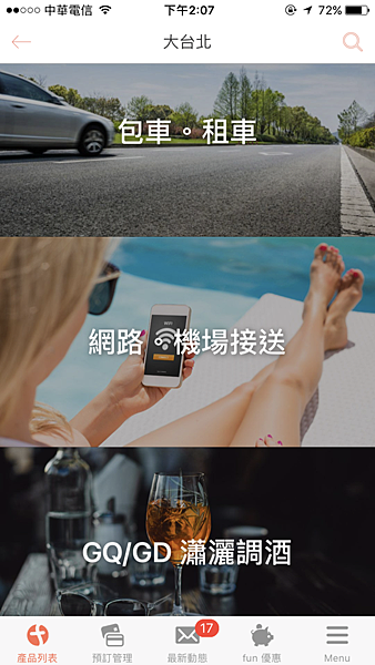 後來發現Funnow增加了很多服務的類別,現在就連機場接送機也有了!!?