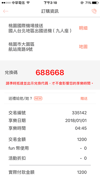 喔對了,下車前司機會掃描兌換碼,所以要把手機借給司機一下喔。