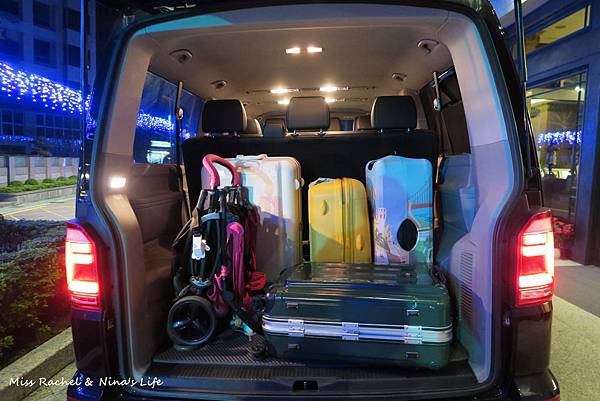 像我因為這次出國人數比較多、帶著小孩、行李也有四個,再加上推車~~一般的五人坐是塞不下的啦