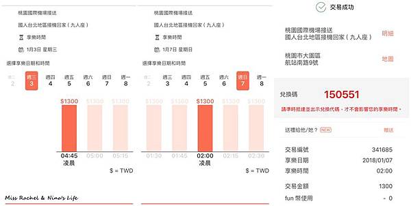 ②使用機場接送,結帳時輸入「rachelpickup」,可以有95折優惠喔。