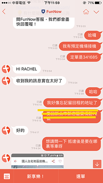 FunNow讓人很安心的是,大概隔天就會有客服人員打電話來跟你再次確認,然後快出發前本來我還想說會不會司機不來