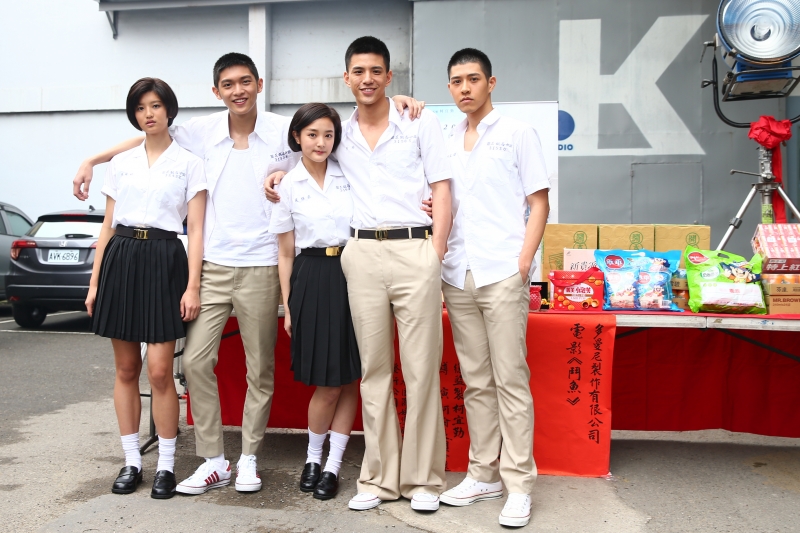 《鬥魚》電影版22日開鏡,主要演員著學生服曬青春氣息,林柏叡、吳岳擎、林輝瑝三個大男生為了符合角色設定,二話不說就剃了三分頭,王淨、陳虹茜則不惜剪了20公分的長髮,以學生妹形象亮相。而導演柯翰辰為了要營造林柏叡、吳岳擎、林輝瑝、陳虹茜等人從小在眷村長大的好默契,特地安排四人集中住宿,四人在住宿第一天就集體去逛通化夜市,大啖美食。林輝瑝擔任起大夥的糾察隊,提醒所有人每天早上要喝熱的對身體才好,叮嚀「若要早一點喝孟婆湯的話就每日喝一杯冰水。」他更自曝會幫忙戲中大哥林柏叡洗內褲,還會負責幫大家洗碗,幫忙打點集中住宿生活裡的大小事。林柏叡則曝想把陳虹茜關在房間外的窗戶,只因有一晚她偷看他睡覺,笑說「可以關在窗戶看得夠」。