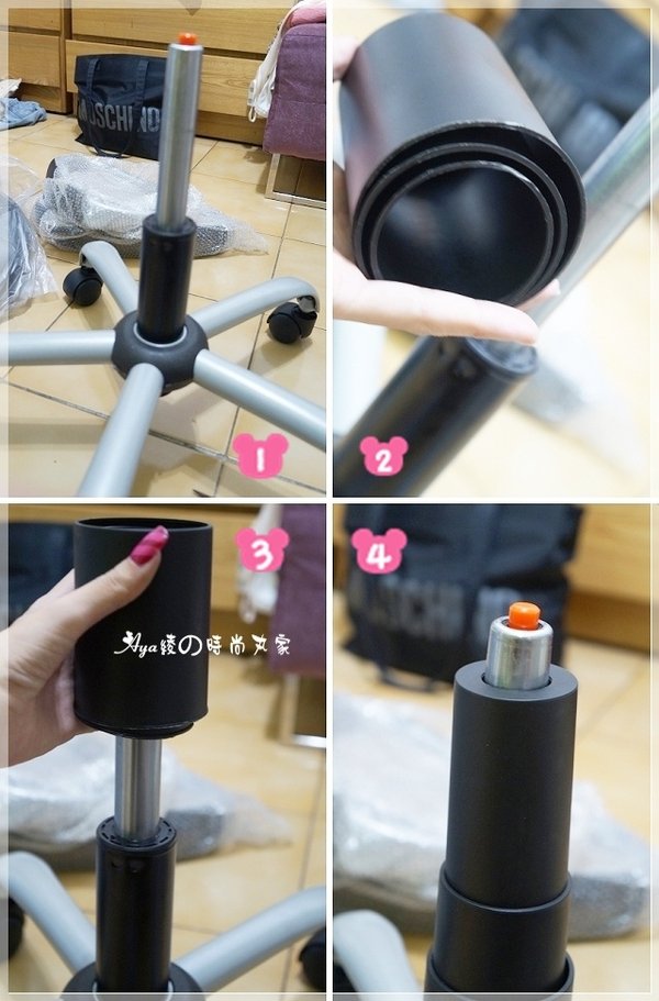 再將整個座椅組裝上裝有氣壓棒的腳架上,就完整的完工囉!!~
