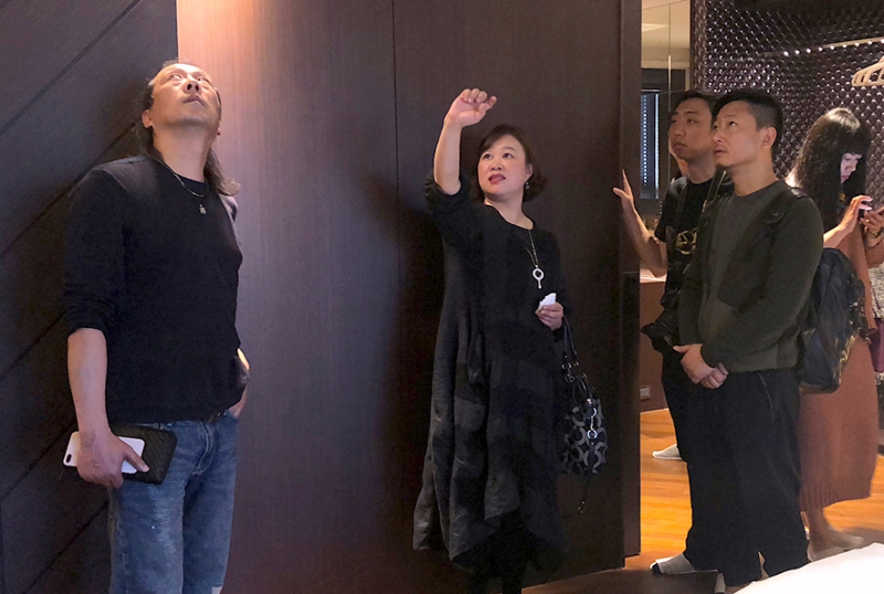 在參觀總監的設計作品《韜光隱山水》過程中,現場的設計師們迫不及待地請教——設計上運用的手法、材質的挑選搭配,及和業主溝通過程中所面臨的問題。總監耐心地聆聽每位提問者的問題,並逐一為大家解惑;詳細的說明及貼近人心的設計理念,也讓在場設計師們抱以專注的神情,並從中獲得全新的設計觀點。