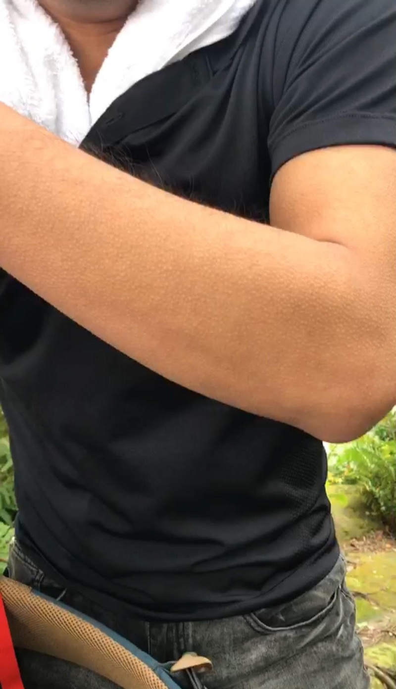 一休息也猛喝熱茶暖身卻低檔不住起雞皮疙瘩的手臂,