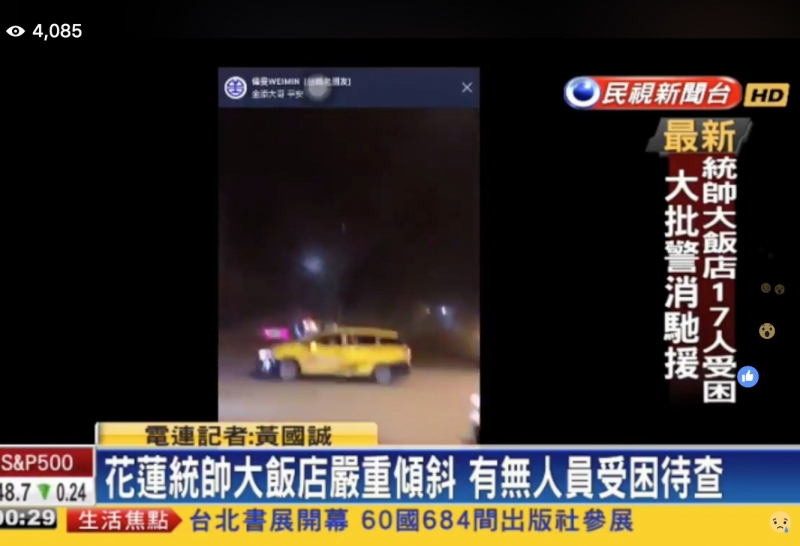 身為新聞媒體,為提供最新災情新聞,民視新聞團隊立即從南部及北部調派六組記者前往花蓮災區,加上原駐地記者,積極動員,提供第一手災區畫面給觀眾,並即時報導救難、避難等相關資訊,讓民眾得以在第一時間掌握最新訊息。另有台北地區記者前往防災應變中心、氣象局,隨時提供地震最新資訊。並立即決定不收棚,讓觀眾收看地震訊息不中斷。