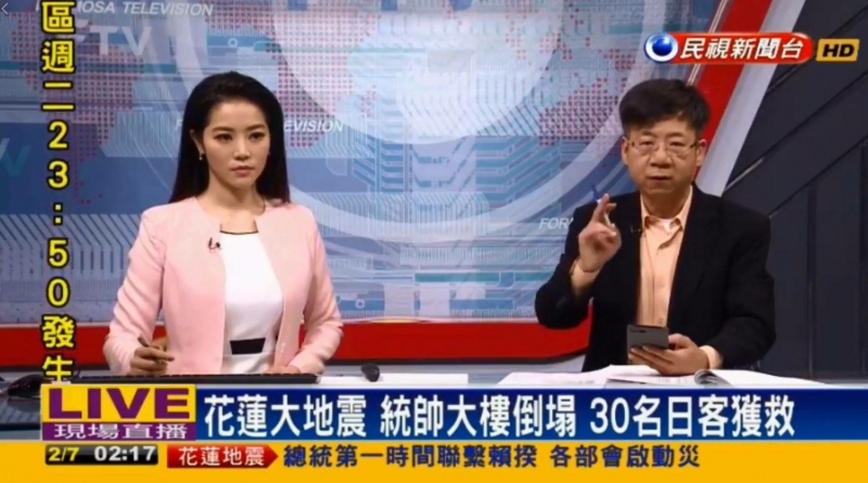 民視氣象主播林嘉愷立即趕到攝影棚,與夜線新聞主播劉方慈搭檔,提供最專業的地震新聞。回顧2016年台南地震時,嘉愷主播也是第一時間趕往攝影棚,完全沒有梳化就開始播報,在PTT上被讚爆,就有網友回顧「台南地震時,林嘉愷超猛,沒上妝直接開棚與副控撐2小時」;昨日地震的超快速播報,網友也紛紛討論「阿愷是住公司樓下嗎?」,更大誇「全台最強氣象直播上線啦~」、「果然薑還是老的大,大場面林嘉愷hold得住。」