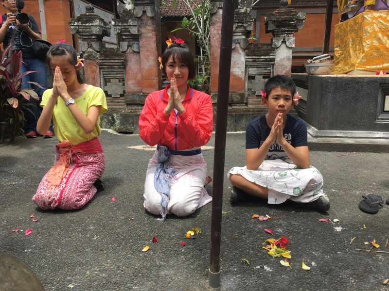 正好遇上峇里島節日「庫寧甘日」,湘涵和2位小旅伴參加傳統儀式。