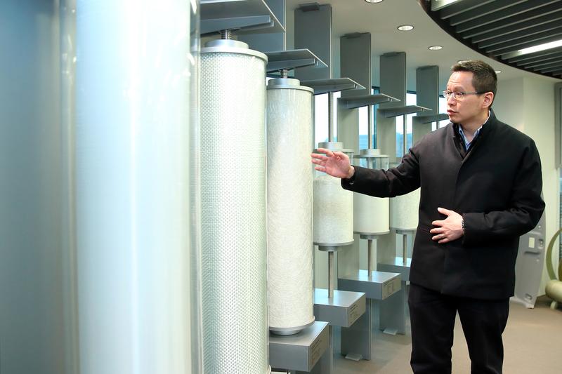 採訪當天,台玻董事長林伯豐帶著本刊參觀產品展示廳,當來到玻璃纖維區時,台玻纖維事業部總經理林嘉佑認真解說:「目前包括手機板、車用電子裡面的印刷電路板綠色這塊都有玻璃纖維,目前我們也積極擴產投資。」