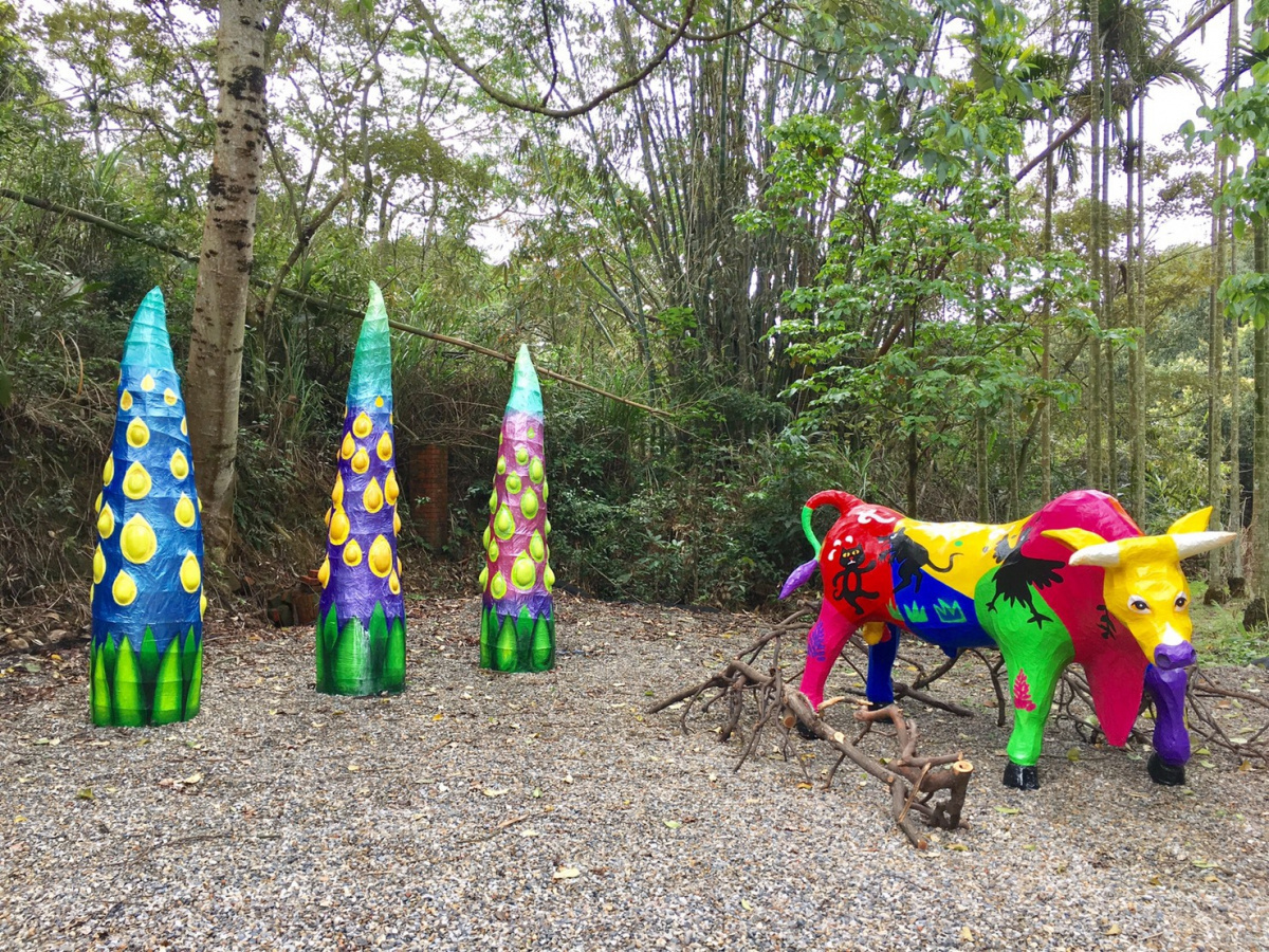 龍潭三和社區以打造農村再生及藝術結合社造之規劃而遠近馳名,具有濃厚地客家傳統風貌,且為鍾肇政年輕時步行奔波的地點,可說是《魯冰花》構思的重要起源之一,故劉經倫創作以《魯冰花》之中提到形容小主人公古阿明的繪畫如西方野獸派畫家馬蒂斯風格之文本,以鋼線、廢報紙、布等環保材料邀請社區一同建構狂野不羈的牛隻,上面繪製有風格狂野、對比強烈的雞、鴨、貓兒及狗兒等農村元素;另外更以編織手法創作高達三公尺的色彩繽紛魯冰花燈光裝置,一來呈現《魯冰花》中之田園景緻,二來則呼應文本中小主人公古阿明之繪畫風格,最後則規劃邀請三和里居民共同參與創作過程,實現《魯冰花》所提倡之藝術教育精神。