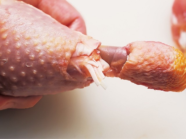 13.棒腿肉的骨頭周圍若還有紅色血跡,就用熱油澆淋使其確實熟透。