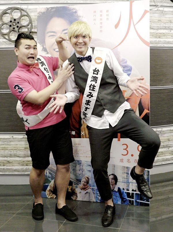 「漫才少爺」三木奮(右)、太田拓郎(左)在電影《火花》試映會前大秀中文漫才