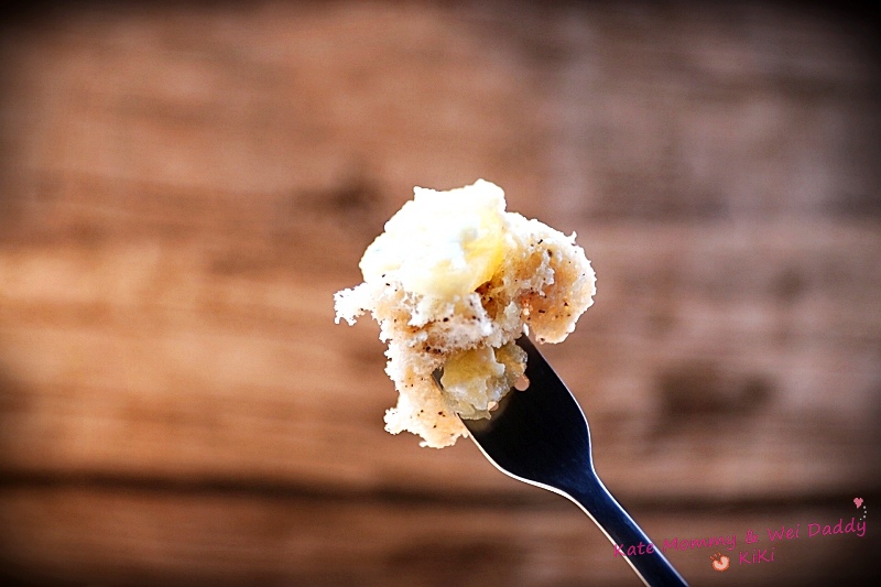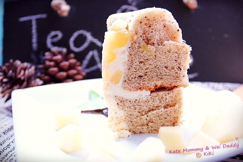 嚴選唐寧伯爵紅茶加入麵糊中,成了淡淡清香的戚風蛋糕體
