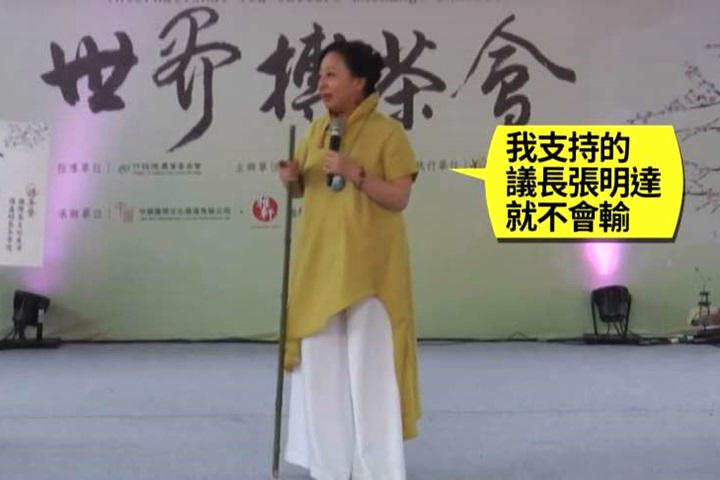 嘉義縣主辦的世界茶博會上,張花冠突然拿起打狗棒,化身《射鵰英雄傳》裏的女主角黃蓉。