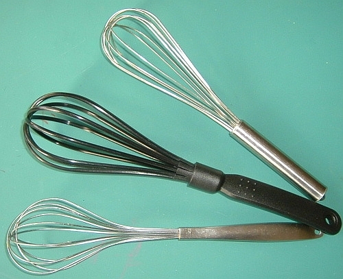 不鏽鋼製的手動攪拌器,硬度高,比較適合作為打發奶油、雞蛋以及攪拌食材,特別是濃稠度高的食材與麵糊,只能用不鏽鋼製的手動攪拌器來操作。