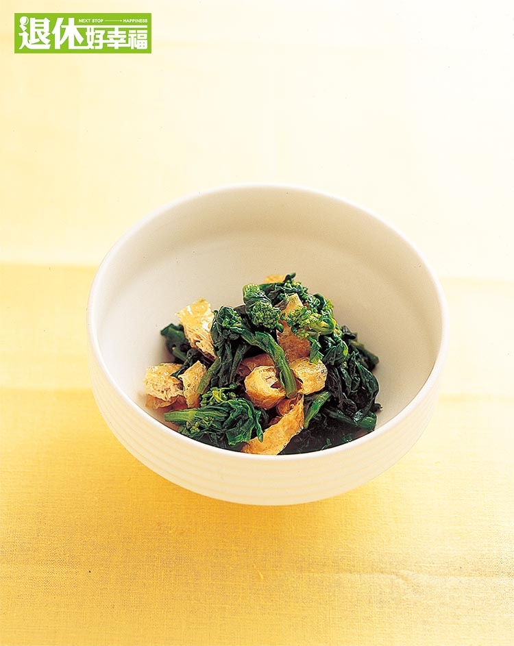 材料:橄欖菜150公克、炸豆包一塊(25公克)、沙拉油2小匙