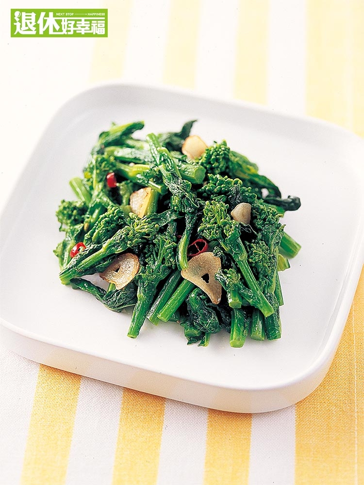 材料:橄欖菜50公克、大蒜一瓣(10公克)、紅辣椒1/2根、橄欖油1/2大匙(沙拉油亦可)、鹽1/6小匙、胡椒少許。