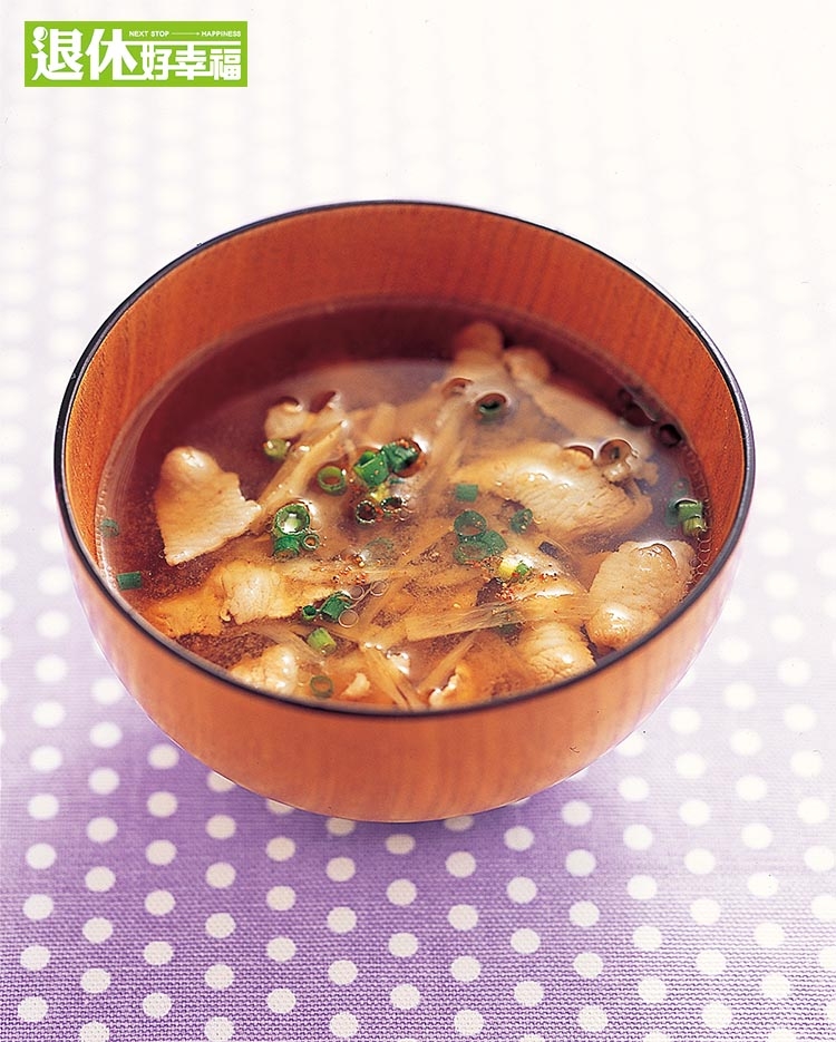 材料:牛蒡1/4根(50公克)、豬五花肉(薄片)50公克、細蔥3根、高湯2又1/2杯、味噌1又1/2大匙、七味粉少許。