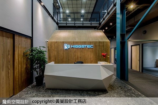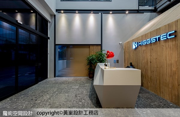 進入內部,黃巢設計工務店以白色鑽石切割造型表現接待櫃台,在寬敞挑高的空間裡聚焦目光。