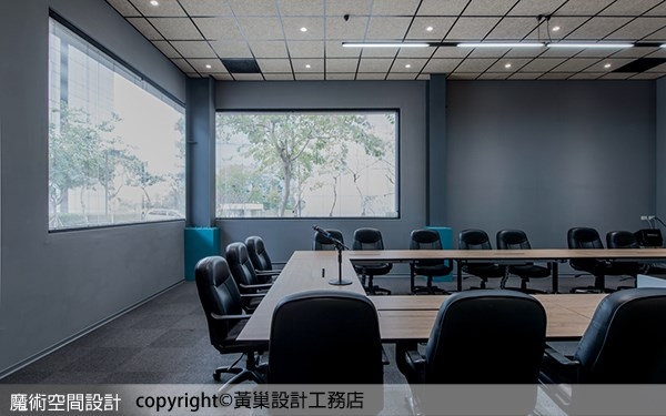 ▲大會議室位於建築物臨街轉角處開啟L型透光窗景,讓會議室展現功能之外的大器感。