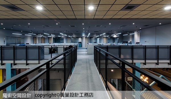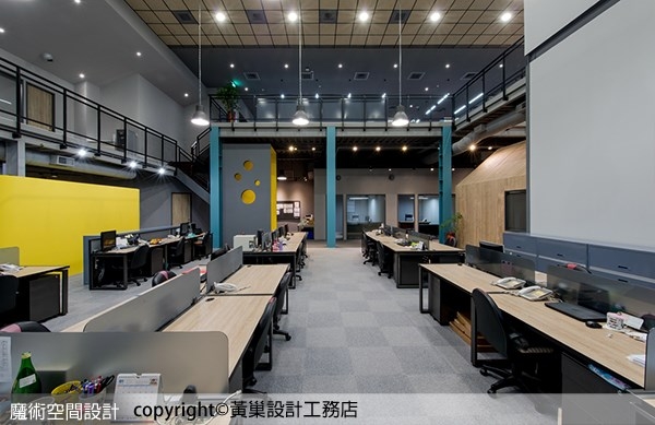 ▲偌大空間以工作性質分區配置,保持敞闊氣勢,局部點綴繽紛色彩,活潑空間氣氛。