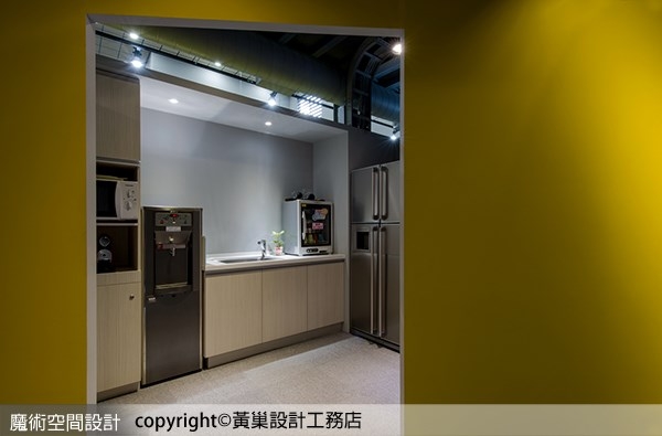 ▲茶水間以黃色表現外觀,醒目又能讓員工感受愉悅的正能量。
