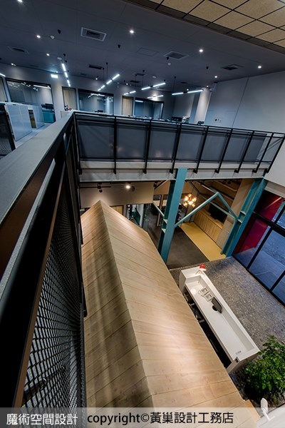 ▲從上向下俯瞰,活潑的空間調性,為員工創造舒適的工作環境,帶來好效率。
