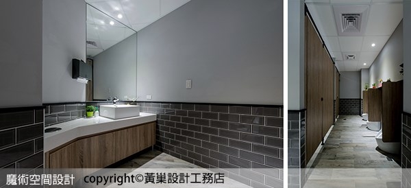 ▲黃巢設計工務店為廠辦員工設計的盥洗室,材質配色與鋪排,有星級飯店的好感度。