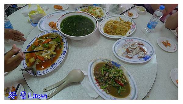 因此第一餐結束,本組戰績是乾乾淨淨,那時我還沒想太多,只是起身時發現別桌都有剩,想著可能本組半數成員因為清晨要坐飛機、坐船過來,早餐不敢食用,所以這頓餓得慌才會吃這麼多……但是代誌絕對不是憨人想得這麼簡單,本桌名為十人,可能隱藏版其實應該有十五人吧!(喂!