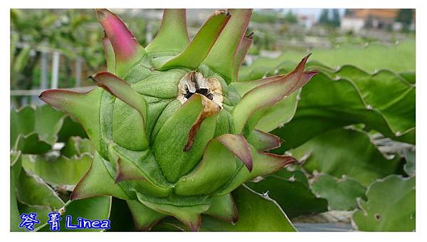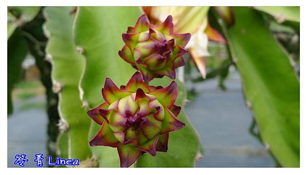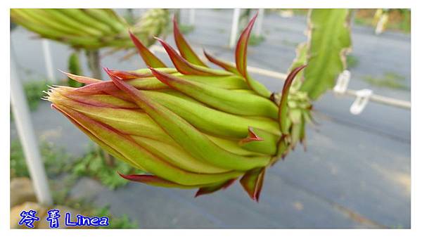 我們去的時候剛好遇到花正要開放,瞧瞧那花跟曇花實在有九分像,未開之花苞卻像極了晨起已萎去的曇花,真是看得我食指大動……因為曇花蛋花湯一向是我的最愛啊~開花之後,花蒂部份就會開始慢慢變成火龍果囉!