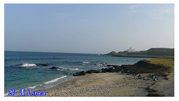 時近黃昏,此時不拍海景待何時?我們沿上前往月鯉灣,這是七美唯一的沙岸,也正是唯一可以偷渡上岸之處,海水清澈見底,看了直想脫鞋下去玩水哩!