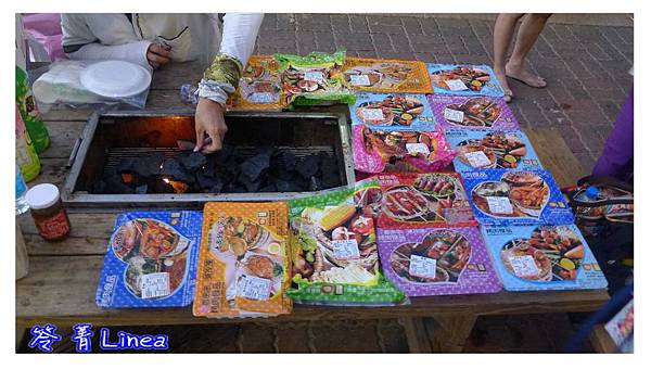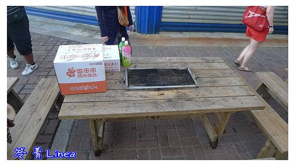 車子回到港口邊的德奇民宿,白天停摩托車的地方突然搖身一遍,成了烤肉區啦!一張張木桌擺妥,桌上還有一大箱神秘物品,大家興奮的聚到桌邊,第一件事就是開箱──這真的挺驚為天人的,我沒想到現在烤肉這麼方便!