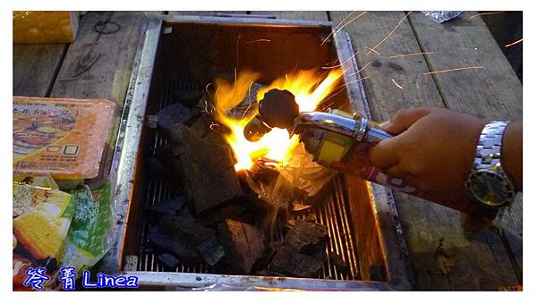 我們把炭擺好後,專人用火槍燃炭,這樣生火超級快唷!