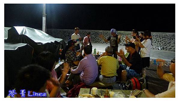 在七美夜色下,烤肉香陣陣,氣氛歡愉之際,隨行還有威克樂團的拉克老師,興頭一來,搬起寶貝吉他,立刻來段現場彈奏演唱,讓氣氛HIGH到最高點,要不是等會兒還要騎機車,能來再來一手必魯就更適合啦!XDDD(喝酒不騎、開車,騎、開車不喝酒喔!)