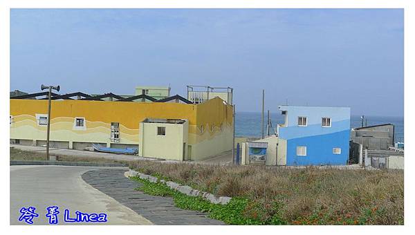 在彩繪房子區這邊,還有個相當重要的九孔養殖區,遠遠的拍著大海,還可以發現層架,層架之下可都是九孔呢!
