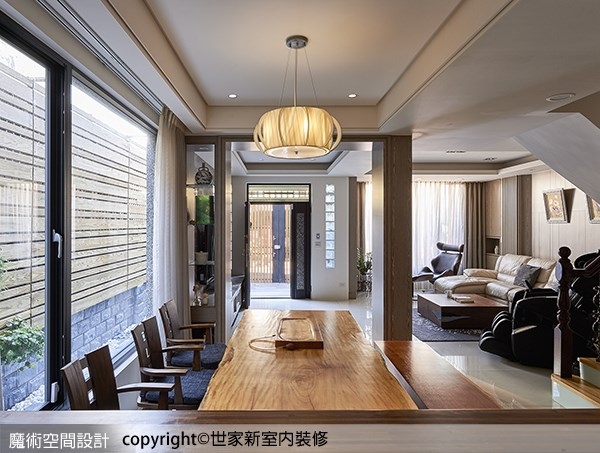 ▲世家新室內設計在舊屋翻修後的一樓空間保持敞闊無隔的規劃,充足的光線讓現代感設計增添自然色溫,多了家的馨暖。